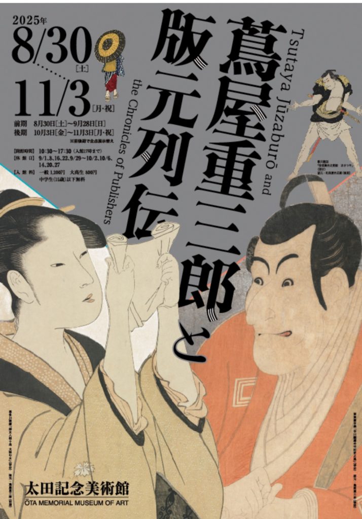 葛飾北斎の冨嶽三十六景展の後は「蔦屋重三郎と版元列伝展」が始まり、大河ドラマのべらぼうを観ていないので躊躇しましたがX(Twitter)で展示の紹介を見たら世界で太田記念美術館だけが所蔵する東洲斎写楽の作品を9年ぶりに展示するとのことでどうしても実際見てみたく太田記念美術館へ行ってきました。