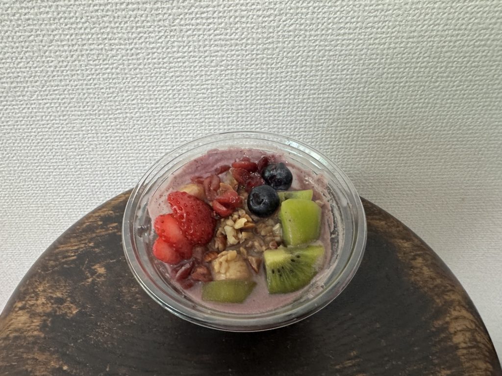 たしかサミットが本気で考えたというような紹介があったと思うのですが、調べてみると店舗によって紹介が違うみたいです。いちご、キウイ、バナナ、ラズベリー、ブルーベリーにナッツ類とたくさん入っていて美味しいです。最近は、りんごやブドウが入った新商品も出ていて、こちらもまた違った良さがあります。もともとアサイーが好きなのですが、フルーツとこんなに相性がいいんだなと改めて思いました。朝食として食べていて、タンパク質もとれるので、できればこれからもずっと置いてほしい商品です。興味がありましたら是非。