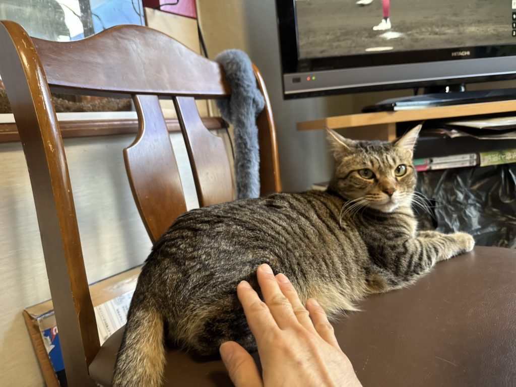 最初の頃はチビに「シャー!」と威嚇されていましたが、やっと触れるようになりました。(ちょっとイカ耳でありますが)対して丸は撫でようとすると逃げるようになり、なかなか2匹とも好かれるのは難しいようです。茅根さんからいただいたチャオちゅーるで気をひこうとしたら、おやつは母が率先してあげており、ご飯も以前プレゼントした自動餌やり機を使っているので、帰ったら自分から隙を見つけてやらないといけなそうです。なるべく連休には帰って顔を忘れられないようにしようと思った春休みでした。